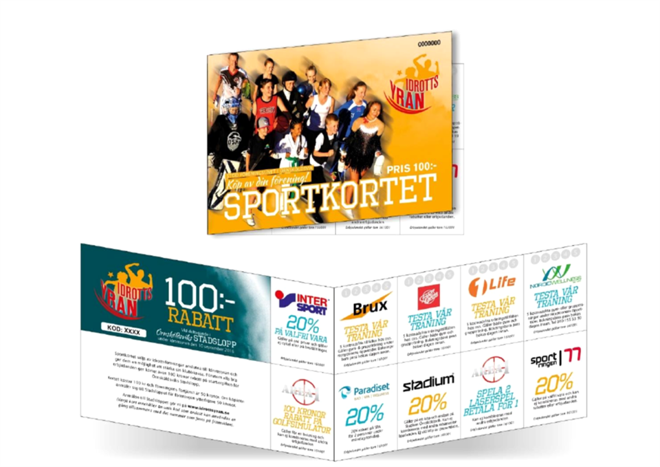 Trött på Salami, tandborstar och toalettpapper? Genom att sälja Sportkortet kan ni förstärka lagkassan på ett utmärkt sätt och samtidigt bidra till att få fart på era supportrar och medlemmar. Sportkortet är ett rabatthäfte som kostar 100 kr och innehåller bland annat en rabatt på 100 kr på startavgiften till Örnsköldsviks Stadslopp. Sportkortet innehåller även en mängd rabatter inom idrott och hälsa. Föreningen/Laget behåller 50 kr per sålt Sportkort samt får ytterligare 50 kr i kickback om köparen anmäler sig till Örnsköldsviks Stadslopp. Föreningen/Laget kan alltså tjäna 100 kr per sålt Sportkort! Säljstart 1 mars 2016 och självklart är det full returrätt! Är ni intresserad av att sälja Sportkortet? Tveka inte att ta kontakt med oss så berättar vi mer! Sport & Adventure 0660 – 198 01 www.idrottsyran.se info@idrottsyran.se Läs mer: Idrottsyran - sportkortet