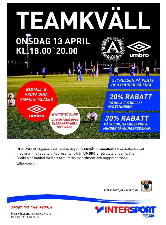 Intersport bjuder in till en fotbollskväll onsdag den 13/4 kl 18.00-20.00.