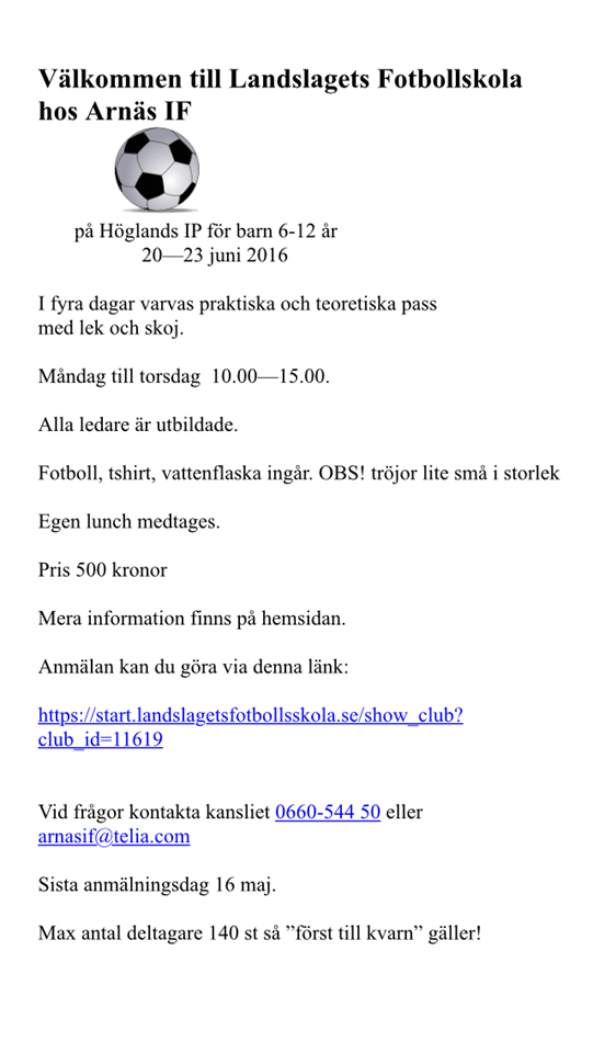 Välkommen till Landslagets fotbollsskola på Höglands IP, 20-23 juni (För mer info klicka på bilden)
