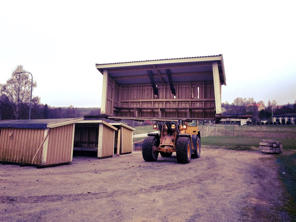 Idag lyftes gamla avbytarbås bort från 7- och 11-mannaplanerna. Nya bås är tillverkade tillsammans med Parkskolan och kommer på plats inom kort. Imorgon händer det mycket nere på Höglands IP. Näten bakom målen ska fixas, grund för nya bås ska förberedas och kanske kommer altanen att växa fram ytterligare? Allt med hjälp av anläggningsgrupperna i våra lag. Har du inget annat för dig så kom ner på IP imorgon, vi kan lova mycket action!:)
